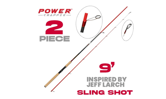 The POWER CRAPPIE™ – Todd Huckabee Signature Series Rod™ 9’ Sling Shot is a two-piece rod designed for pitching and has enough backbone to boat flip giant crappie. Two of the unique features are the bigger 1st eye allows the line to come off your fishing reel more smoothly, and the tip eyelet allows line to flow off of the tip better reducing rod wrap. These new features were inspired by Professional Crappie Tournament Angler and Guide, Jeff Larch from Arkansas.