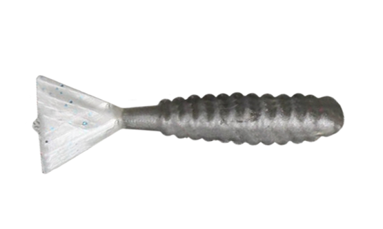 This Guppy Gobbler is Silver Smoke Body with Gold Flake with White Tail with Blue Sparkles.