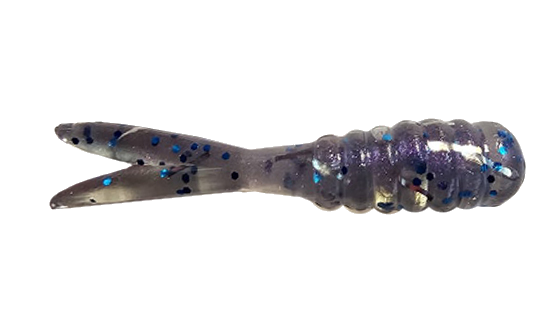 This Small Fry is a violet purple color with blue and silver whisker glitter throughout the body and tail. This Small Fry is 1.25 inches Long.